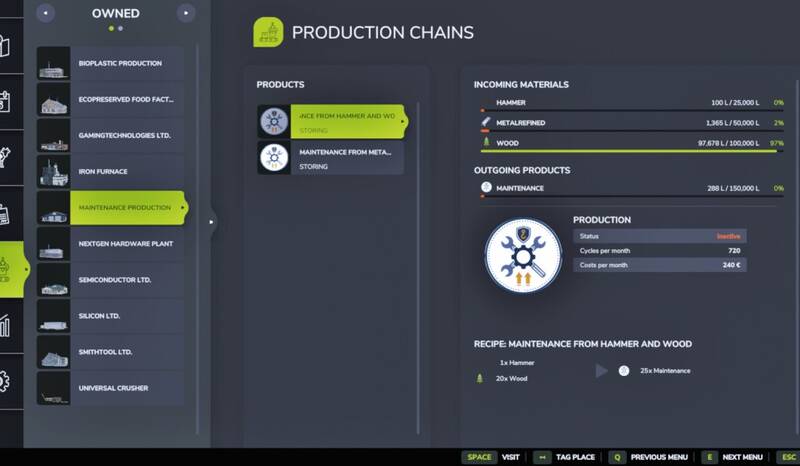 In dieser Produktionsanlage kannst du Wartungsmaterialien aus verschiedenen Rohstoffen herstellen.Preis: 95.000 €Monatliche Wartungskosten: 250 €Produktionszutaten: Metallbarren, Hammer, Holz, Eisenerz...