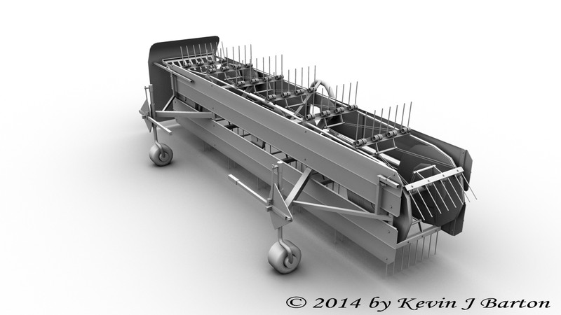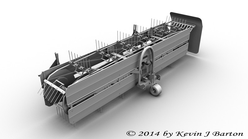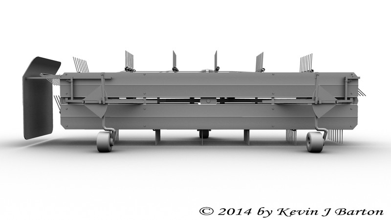 Das Grundmodell zum Sepp Knüsel Bandrechen Vario 250 ist fertig. So könnte es später auch mal als normales Anbaugerät genutzt werden. Als nächstes werde ich die Umbauten anfertigen die nötig sind um ihn mit dem Holder zu bedienen und anschließend wird texturiert.