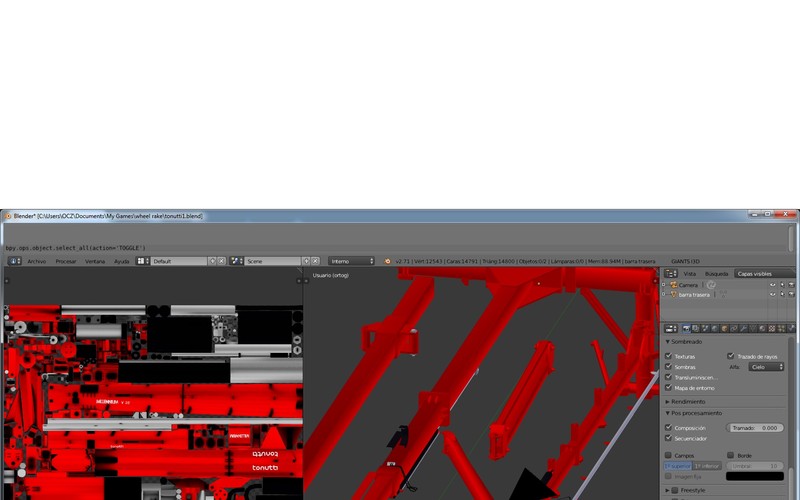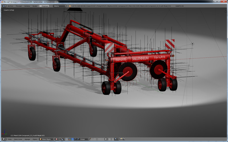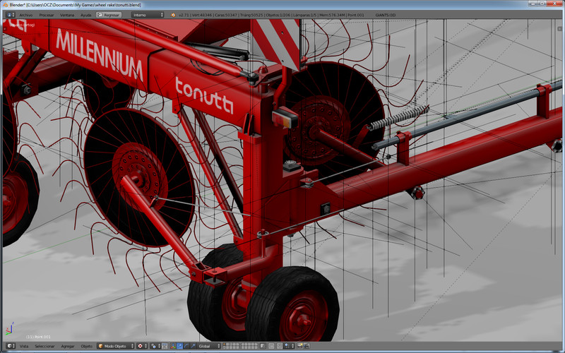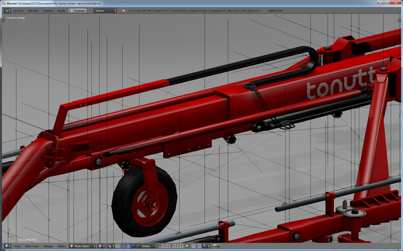 Continuing with the miserable rakes, now when I have the program to gather the crop proved, I am going to try to create this model which has of complex the big number of solid in movement, in addition to I afford to put into practice some knowledges acquired in the course of blender to improve the textures and to practise with the assembly directly in this one. For the time being only I begin the assembly, I already have the environmental occlusion and the mapeados of all the pieces, suppose that in two weeks it will be ready to enter the game and to polish the movements.