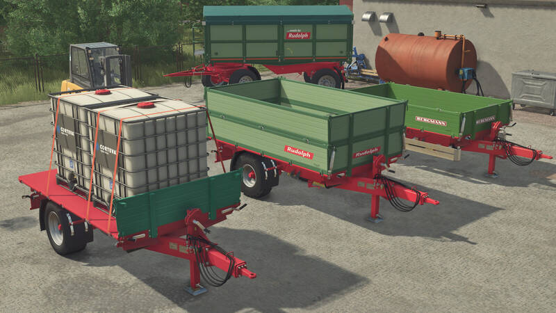 Der 3-Seiten-Kipper ist eine kleine Modifikation des Farmtech EDK650 mit Holzwänden und mehreren vordefinierten Marken-Konfigurationen. Er bietet: