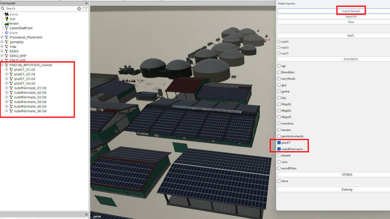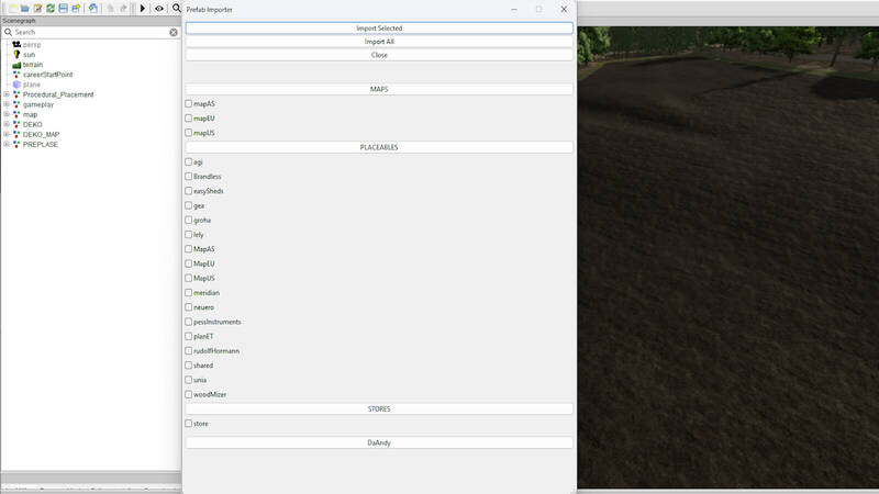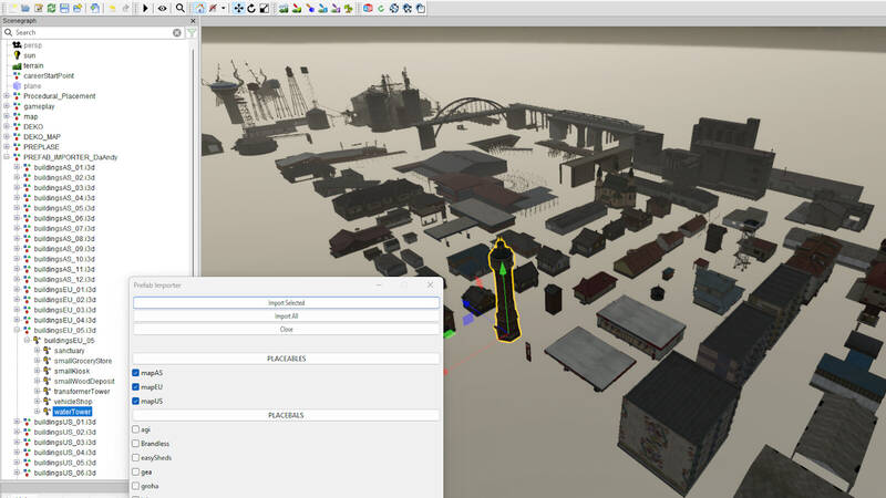 Das Prefab wird im Prefab-Ordner der Karte platziert. Ein benutzerdefiniertes Lua-Skript, das mit der Karte geliefert wird, ermöglicht den einfachen Import von Gebäuden aus dieser Sammlung in Ihre Szene.