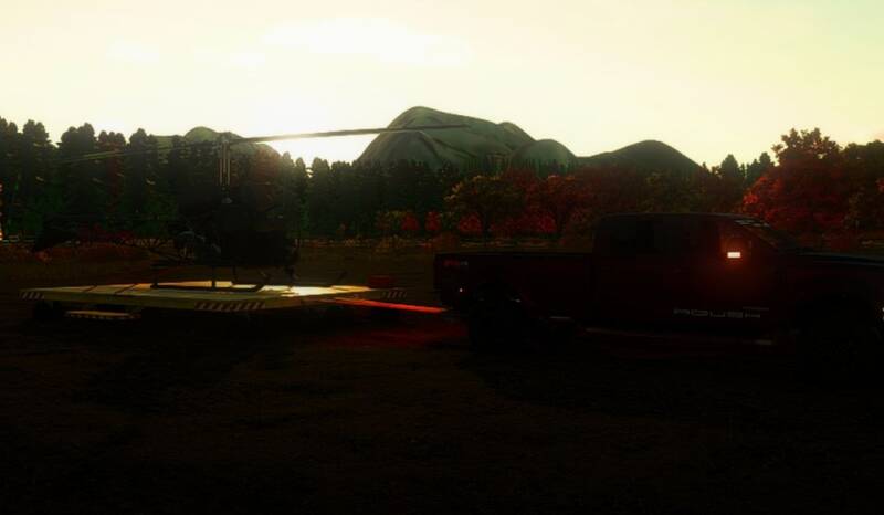 Das flache Helipad-Deck bietet ausreichend Platz, damit Hubschrauber während des Transports sicher sitzen können. Sein niedriges Profil und der robuste Rahmen vereinfachen das Beladen und sorgen für Stabilität beim Fahren über die Karte.