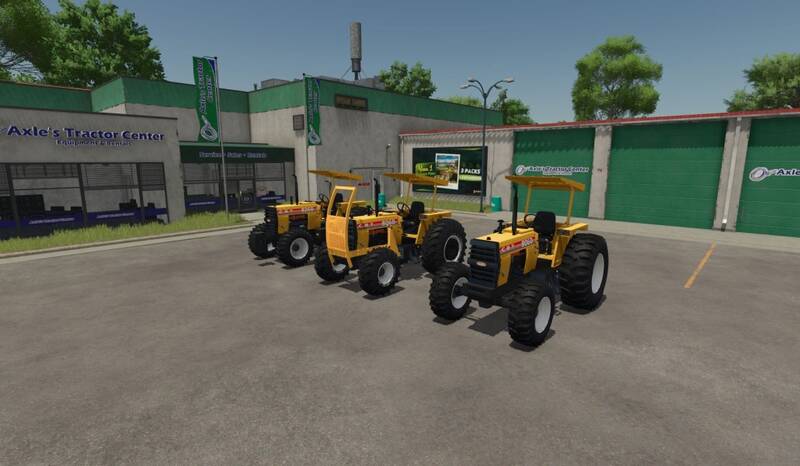 Mit Motoroptionen, Reifenwahl, Frontgewicht und Frontkupplung. Das Frontschild kann zum Freimachen von Feldern und Fällen von Bäumen verwendet werden.