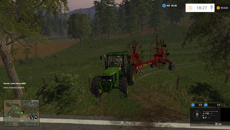 Performanceverbesserungen; Hof mit Ballenlager ausgestattet und umgebaut; Dateigröße um 35 MB verkleinert; Mehr Bodenwinkel entfernt; KuhNavMesh angepasst; Kartoffelwaschanlage upgedatet; Terrainanpassungen; Verschmutzungen und Straßennetz bearbeitet