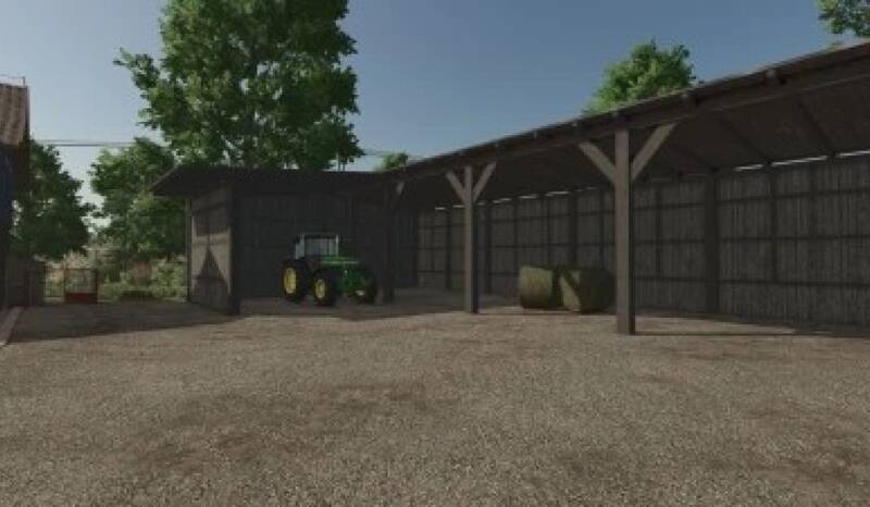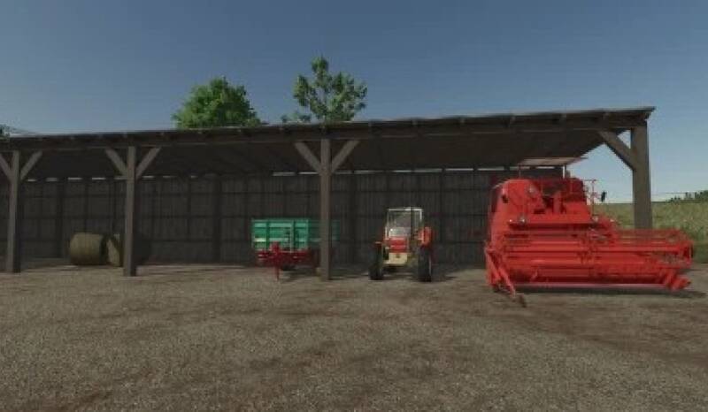 Ein robuster Holzunterstand mit einem Blechdach, ideal zum Lagern von Maschinen und anderen Gegenständen, die Schutz vor den Elementen benötigen. Änderungen: - Problem mit Schnee auf dem Dach behoben Kosten: 14.000$ Tägliche Wartung: 10$