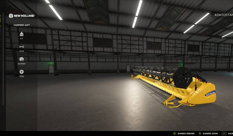 Dieses Pack enthält den New Holland CX 7.70, Varifeed 28ft, Varifeed 41ft und ein Maisgebiss.