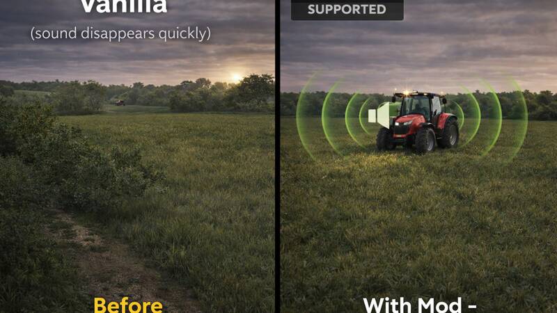 Sind Sie es leid, dass die Motorgeräusche der Maschinen schon nach kurzer Entfernung verschwinden? Dieses Mod erhöht die Reichweite, in der Fahrzeugmotoren zu hören sind, erheblich und macht die Farmaktivitäten viel realistischer.
