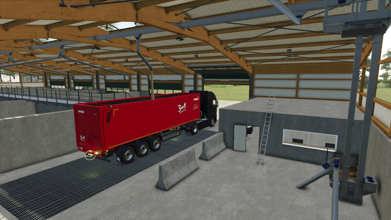 Dieses Paket umfasst zwei Getreidespeicher. Das Hauptgebäude verfügt über eine Erweiterung über den Türen, während das zweite dies nicht hat.