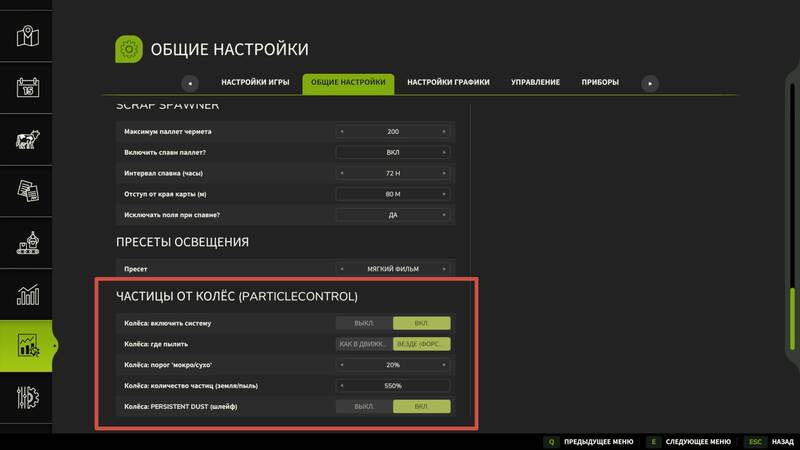 Wheels Particle Control ist ein technischer Mod für den Farming Simulator 25, der die visuellen Effekte von Staub und Erde verbessert, die durch Fahrzeugräder aufgewirbelt werden.