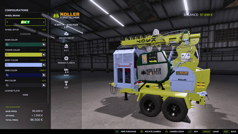 Hinweis: Wenn Sie die "unlimitedColorConfigurations" für K307+ EckoFlex Modelle verwenden, erscheint im Shop ein Auswahlmenü, um die Farbe des Yarderwagens zu ändern. Dies ändert nur die Farbe des ausgeklappten Yarderwagens.